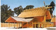 日本神社的主要代表。神社是崇奉與祭祀神道教(一種自然神教)中各神靈的社屋,是日本宗教建筑中最古老的類型。由于神道教與日本人民生活密切聯(lián)系,神社十分普遍。神社自7世紀(jì)起實(shí)行“造替”制度,即每隔幾十年就重建一次。伊勢神宮位于三重縣,傳說起于遠(yuǎn)古時代。它的“造替”制度為每隔20年一次。神宮由內(nèi)宮和外宮兩大部分組成。正殿居內(nèi)宮中心是日本古建筑格式之一“神明造”的典型例子。平面矩形長邊入口,挖土立柱,山墻上有山花中柱,懸山式草頂屋,屋面呈直線形。從外宮至內(nèi)宮有數(shù)道柵欄和圍墻圍繞,形成層層空間,外墻四方設(shè)有鳥居。