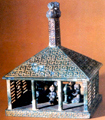 最早為西周遺存,圓瓦當(dāng)是從半瓦當(dāng)發(fā)展而來的。圓瓦當(dāng)始見于戰(zhàn)國早期遺址。東周瓦當(dāng)?shù)膱D案有動(dòng)植物圖案、云紋以及動(dòng)植物變形圖案等。河北易縣燕下都出土的獸面紋半瓦當(dāng),雙獸相背,張口吐舌,首尾蟠曲,即為變體動(dòng)物紋圖案。河北平山三汲出土的北域圖銅版,展示出陵園的平面布局,并有文字說明和各部分的名稱、長(zhǎng)度,是研究東周建筑史的珍貴資料。河北易縣燕下都東貫城出土的樓闕形飾件,不僅使我們得以直觀東周的樓闕結(jié)構(gòu),也進(jìn)一步了解到當(dāng)時(shí)權(quán)貴的實(shí)際生活情景。
