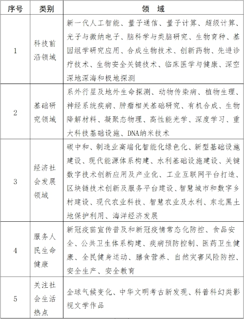 聚焦國家發(fā)展和安全的重大難題、戰(zhàn)略性需求,圍繞關(guān)鍵核心技術(shù)、重大工程與計劃、自主創(chuàng)新技術(shù)等方面開展創(chuàng)作,科學(xué)詮釋相關(guān)成果及技術(shù),挖掘胸懷祖國、服務(wù)人民的科學(xué)家精神,回應(yīng)公眾對國家科技發(fā)展及戰(zhàn)略布局的關(guān)切。