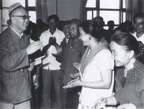 華羅庚到新疆推廣優(yōu)選法、統(tǒng)籌法,受到熱烈歡迎。 |