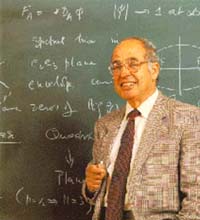 這些是我所能看到的在下個(gè)十年里出現(xiàn)的幾個(gè)方面,但也有一些難以捉摸的東西:返回至低維幾何。與所有無窮維的富有想象的事物在一起,低維幾何的處境有些尷尬。從很多方面來看,我們開始時(shí)討論的維數(shù),或我們祖先開始時(shí)的維數(shù),仍留下某些未解之謎。維數(shù)為2,3和4的對(duì)象被我們稱為“低”維的。例如Thurston在三維幾何的工作,目標(biāo)就是能夠給出一個(gè)三維流形上的幾何分類,這比二維理論要深刻得多。Thurston綱領(lǐng)還遠(yuǎn)遠(yuǎn)沒有完成,完成這個(gè)綱領(lǐng)當(dāng)然將是一個(gè)重要的挑戰(zhàn)。