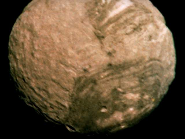 天王星和天衛(wèi)五,后面蘭色的是天王星,黑色的細線即為它的光環(huán)