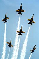 1974年,“藍(lán)天使”表演隊換裝了A-4F“天鷹”式攻擊機(jī)。由于A-4F具有良好的技術(shù)性能和完備的機(jī)載設(shè)備,使它在表演隊服役了近12年的時間。1987年,“藍(lán)天使”飛行表演隊開始裝備現(xiàn)代化的F/A-18“大黃蜂”戰(zhàn)斗攻擊機(jī),它是“藍(lán)天使”飛行表演隊的第七代表演用機(jī),“藍(lán)天使”的飛行表演也開始跨入了一個新的階段。