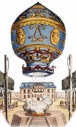 1783年9月19日,晴朗的秋空掛著幾縷白云。華麗的凡爾賽宮前人山人海,法王路易十六和他那著名的王后瑪麗.安托瓦內(nèi)特親臨觀看蒙特哥菲爾兄弟的熱氣球升空表演。出現(xiàn)在眾人面前的是一個(gè)全新制作的,上面掛有許多裝飾物,高達(dá)75英尺(22.8米)的氣球。為了使這次升空更有意義,兄弟倆在氣球下面掛了一個(gè)籠子,里面載著有史以來(lái)第一批空中旅客