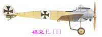這些福克飛機(jī)編號(hào)為福克E,有多種型別。它們都采用正常布局的中單翼,有張線加強(qiáng),機(jī)翼展弦比不大,機(jī)動(dòng)性較好,機(jī)槍裝在機(jī)頭上部,易于瞄準(zhǔn)射擊,是第一次世界大戰(zhàn)中有名的戰(zhàn)斗機(jī)。