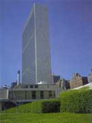 1946年選址時(shí),美國J.小洛克菲勒出資購買紐約曼哈頓島東河岸邊大片街區(qū)相贈(zèng),經(jīng)聯(lián)合國大會(huì)決議接受,遂定址紐約。1947年成立由國際知名建筑師(包括中國梁思成教授)組成的設(shè)計(jì)委員會(huì),設(shè)計(jì)總負(fù)責(zé)人為美國建筑師W.K.哈里森。