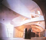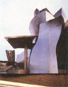 這座建筑物建筑面積達2.4萬平方米,位于勒維翁河濱,下部有石質(zhì)墻面的較方正的管理用房等,而主要的建筑體量異常彎扭復雜,那些難以名狀的流動彎曲的體量,內(nèi)部是鋼架,外表覆蓋鈦板,鈦板的總面積達2.787萬平方米。結(jié)構設計由SOM事務所承擔。結(jié)構方式同造船相近。
