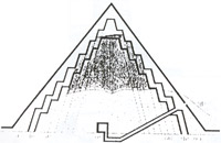 后來,皇帝的陵墓?jié)u漸改變了型制。因為原始的宗教不能滿足皇帝專制制度的需要,必須制造出對皇帝本人的崇拜來。這就必須把他們的陵墓發(fā)展為紀念性的建筑物,而不僅僅是死后的住所。于是,第一王朝皇帝乃伯特卡(Nedetka)在薩卡拉的陵墓,就在祭祀廳堂之上造了九層磚砌的臺基,向高處發(fā)展的集中式紀念性構(gòu)圖萌芽了。