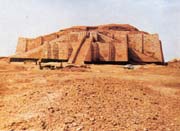 公元前三千紀(jì),幾乎每個城市的主要廟宇都有一個或者幾個山岳臺或者天體臺。殘留至今的烏爾(UR)的月神臺,是夯土的,外貼一層磚,砌著薄薄的凸出體。第一層基底面積為65×45米,高9.75米,有三條大坡道登上第一層,一條垂直于正面,兩條貼著正面。第二層的墓底面積為3723米,高2.50米,以上殘毀,據(jù)估算,總高達(dá)約21米。