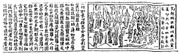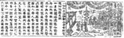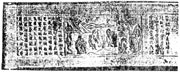 1924年杭州雷峰塔倒塌,在有孔的塔磚內(nèi)再次發(fā)現(xiàn)《寶篋印經(jīng)》。經(jīng)卷有題記“天下兵馬大元帥吳越國(guó)王造此經(jīng)八萬(wàn)四千卷,舍入西關(guān)磚塔,永充供養(yǎng)。乙亥八月日記”。乙亥是宋太宗開(kāi)寶八年(975年)。同時(shí)還發(fā)現(xiàn)了藏在磚塔內(nèi)的塔圖印本。塔圖全長(zhǎng)1米,每層畫(huà)一塔,四塔連接,畫(huà)有佛經(jīng)故事。記文中有丙子記年,為宋太宗太平興國(guó)元年(976年)。圖經(jīng)刻印比佛經(jīng)晚一年。論時(shí)代已入宋朝,其時(shí)吳越國(guó)并未納土,仍應(yīng)列為五代時(shí)期的印刷品。
