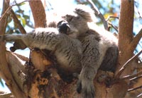 樹熊。如中國(guó)的熊貓一樣,樹熊是澳大利亞的國(guó)寶。世界上只有澳大利亞有樹熊。顧名思義,樹熊生活在樹上,吃在樹上。我在國(guó)立公園里拍照時(shí),幾只樹熊臥在樹上,任游人如何逗它,連眼都懶得睜開。我拍的幾張樹熊照,都是懶洋洋地趴在樹杈上。比起來(lái),樹熊不如熊貓活潑可愛。