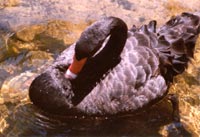 紅嘴黑天鵝,據(jù)說(shuō)是澳大利亞特產(chǎn)。常游于湖中,覓食時(shí)鉆入水中,屁股朝天,好半天也不抬頭,“潛泳”很有功底。中午了,太陽(yáng)直曬,一只紅嘴黑天鵝游到了岸邊樹蔭下休息。我們乘機(jī)接近它,拍下了美麗的特寫鏡頭:黑黝黝的羽毛顯得高貴,配上鮮紅的長(zhǎng)嘴,真可謂高貴而華麗。
