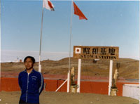 剛到昭和本部,首先望見的是我國(guó)的五星紅旗與日本的太陽(yáng)旗在昭和站上空迎風(fēng)飄揚(yáng)。望著我國(guó)的五星紅旗在南極昭和站上空飄揚(yáng),熱淚不禁奪哐而出:我們之所以成為第一批來(lái)日本南極站考察的中國(guó)科學(xué)家,那是有祖國(guó)在作后盾啊!聯(lián)想到來(lái)日本考察隊(duì)的日子里,我們之所以受到日本朋友的尊重與友好,那也是中國(guó)正在掘起之中,中國(guó)正在興旺發(fā)達(dá)的緣故。我偷偷擦干眼淚,在五星紅旗下留影。