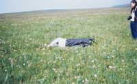 這是作者于1998年拍攝的照片。照片上的是一位來自臺灣的七旬老先生,他隨臺灣的旅游者經(jīng)赤峰而后去內(nèi)蒙古草原 。在內(nèi)蒙古錫林郭勒盟嘎順烏拉,當這位老先生置身美麗寬闊無邊的草甸草原,眼看蘭天白云和花的原野,綠色的海洋,情不自禁的躺在地上,不停的打滾,充分表達了一位旅游者對草原美景的喜愛之情。按常理來說,老年人對什么事都比較穩(wěn)重,很難使他們產(chǎn)生過分激動的舉動,而這位七旬老漢被草原美景所陶醉,控制不住自已而有那樣的舉動,也就可以理解了。與之相似,日本年輕女學生在這片草原實習,當完成任務快要回國時,曾流下激動的眼淚。澳大利亞的草原科學家,當考察過這片草原后,曾深情的建議我們,一定要好好保護這片草原,為了我們的后代子孫。幾乎所有外地的旅游者到了這個地方,置身如此美麗的情景,都會陶醉,都會流連忘返。