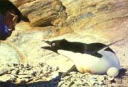 雄企鵝孵蛋的孵化率很難達(dá)到100%,高者達(dá)80%,低者不到10%,甚至有“全軍覆沒(méi)”的慘象發(fā)生。這倒不是由于雄企鵝的“責(zé)任”事故,也不是由于它孵蛋的經(jīng)驗(yàn)不足,技術(shù)不佳,主要是由于惡劣的南極氣候和企鵝的天敵所致。