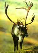 馴鹿,雌鹿體重可達(dá)150多公斤,雄鹿較小為90公斤左右。雄雌鹿都生有一對(duì)樹(shù)枝狀的犄角,幅度可達(dá)1.8米,由真皮骨化后,穿出皮膚而成,每年更換一次,舊角剛剛脫落,新的就開(kāi)始生長(zhǎng)。馴鹿雖然溫順善良,卻并非人工馴養(yǎng)出來(lái)的。北美的馴鹿是純粹野生的;而分布于北歐,主要由拉普人管理的馴鹿則屬于大范圍圈養(yǎng)的。