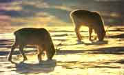馴鹿最驚人的舉動(dòng),就是每年一次長(zhǎng)達(dá)數(shù)百公里的大遷移,也是遇山翻山,逢水涉水,勇往直前,前仆后繼。但與旅鼠不同的是,馴鹿的遷移不是集體去自殺,而是一種充滿(mǎn)理性的長(zhǎng)途旅行。春天一到,它們便離開(kāi)賴(lài)以越冬的亞北極森林和草原,沿著幾百年不變的既定路線往北進(jìn)發(fā)。總是由雌鹿打頭,雄鹿緊隨其后,浩浩蕩蕩,長(zhǎng)驅(qū)直入,日夜兼程,邊走邊吃,沿途脫掉厚厚的冬裝,而生長(zhǎng)出新的薄薄的長(zhǎng)毛。脫掉的絨毛掉在地上,正好成了天然的路標(biāo)。就這樣年復(fù)一年,不知已經(jīng)走了多少個(gè)世紀(jì)。平時(shí)它們總是勻速前進(jìn),秩序井然,只有當(dāng)狼群或獵人追來(lái)的時(shí)候,才會(huì)來(lái)一陣猛跑,展開(kāi)一場(chǎng)生命的角逐。因此,有人把馴鹿的遷移叫做“勝利大逃亡”。