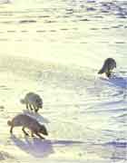 狐貍是北極草原上真正的主人,它們不僅世世代代居住在這里,而且除了人類之外,幾乎沒有什么天敵。因此,在外界的毛皮商人到達(dá)北極之前,狐貍們真是生活得自由自在,無憂無慮。它們雖然無力向馴鹿那樣的大型食草動(dòng)物進(jìn)攻,但捕捉小鳥,撿食鳥蛋,追捕兔子,或者在海邊上撈取軟體動(dòng)物充饑都能干得得心應(yīng)手。到了秋天,它們也能換換口味,到草叢中尋找一點(diǎn)漿果吃,以補(bǔ)充身體所必須的維生素。