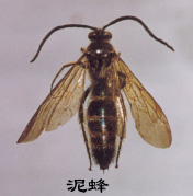一般黑色,有黃色、橙色或紅色的斑紋,體光滑或有毛。腹部紡錘形,具有明顯的腹柄。足細長,前足適于開掘,中足脛節(jié)有2距。后翅具臀葉,多數(shù)有閉室。常捕食鱗翅目幼蟲與直翅目昆蟲作為子代的貯糧。常見的有黑足泥蜂Sphex