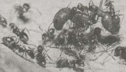俗稱螞蟻。體小,黑色、褐色、黃色或紅色。體光滑或有毛。觸角膝狀,4-13節(jié),柄節(jié)很長,末端2-3節(jié)膨大。腹部第1節(jié)或1、2節(jié)呈結(jié)狀。有翅或無翅。前足的距大,梳狀,為凈角器(清理觸角用)。為多態(tài)型的社會昆蟲,已知14000多中。常見的有家蟻Monomorium