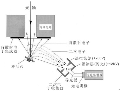 信號收集及顯示系統(tǒng)的作用是檢測樣品在入射電子作用下產(chǎn)生的物理信號,然后經(jīng)視頻放大作為顯像系統(tǒng)的調(diào)制信號。普遍使用的是電子檢測器,它由閃爍體、光導(dǎo)管和光電倍增器組成。