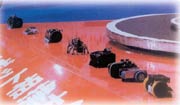 機(jī)器人相撲比賽的規(guī)則要求機(jī)器人的長(zhǎng)和寬不得超過20厘米,重量不得超過3公斤,對(duì)機(jī)器人的身高沒有要求。機(jī)器人的比賽場(chǎng)地是高5厘米,直徑為154厘米的圓形臺(tái)面。臺(tái)面上敷以黑色的硬質(zhì)橡膠,硬質(zhì)橡膠的邊緣處涂有5厘米寬的白線。這種以黑白兩色構(gòu)成邊界線的比賽場(chǎng)地便于相撲機(jī)器人利用低成本的光電傳感器進(jìn)行邊界識(shí)別。相撲機(jī)器人使用的傳感器有:超聲波傳感器、觸覺傳感器等,成本也都不高。正是由于費(fèi)用不太高,所以發(fā)展很快,到1993的第4屆參賽機(jī)器人已超過1000臺(tái)。由于競(jìng)技過程是雙方機(jī)器人“身體”的直接較量,氣氛緊張、比賽激烈。