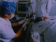 2000年初春,來(lái)自黑龍江某大學(xué)的一位學(xué)生正平靜地躺在中國(guó)人民解放軍海軍總醫(yī)院手術(shù)臺(tái)上。她患有顱咽管瘤,4年前曾做過(guò)開顱手術(shù),不幸的是現(xiàn)在腫瘤又復(fù)發(fā)了,腫瘤壓迫視神經(jīng)使她雙眼視力下降,左眼視力0.02,右眼只有光感。此刻,醫(yī)生們正用先進(jìn)的腦外科機(jī)器人系統(tǒng)為她實(shí)施手術(shù)定位。只見她的頭部貼有4個(gè)標(biāo)志點(diǎn),由這4個(gè)標(biāo)志點(diǎn)建立一個(gè)空間坐標(biāo)系,CT機(jī)以不同的角度為她掃描,之后,醫(yī)生將9張CT圖片輸入計(jì)算機(jī),屏幕上便顯示出三維的病灶部位。醫(yī)生在屏幕上確定手術(shù)的穿刺點(diǎn)和穿刺軌跡,5自由度的機(jī)器人對(duì)準(zhǔn)穿刺點(diǎn),然后自行鎖定這一位置,為醫(yī)生搭建一個(gè)穩(wěn)固的操作平臺(tái),醫(yī)生根據(jù)已標(biāo)定的穿刺點(diǎn)進(jìn)針和實(shí)施相應(yīng)手術(shù)。整個(gè)手術(shù)過(guò)程20分鐘。手術(shù)后,患者自己下床、穿鞋、走出手術(shù)室。三天后,患者出院了,雙眼視力均恢復(fù)到0.9。